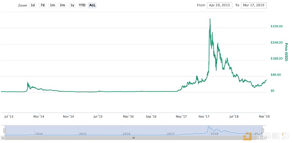 自李启威2019年1月底表示将在2019年升级莱特币以支持隐私交易后,再配合2019年8月莱特币区块奖励减半的利好消息,莱特币已经从30美元一路上涨至61美元附近,价格已经翻番。按2018年12月中旬价格算,莱特币价格已经快翻3倍了。